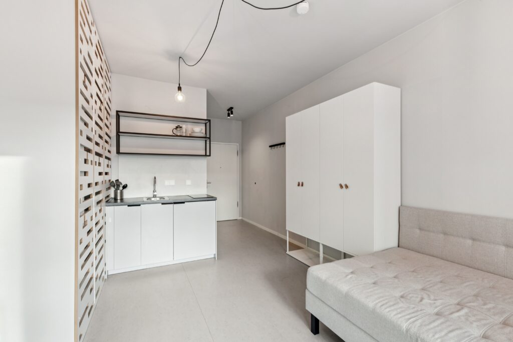 Die angebotene möblierte 1-Zimmer-Wohnung überzeugt durch einen durchdachten Grundriss und eine funktionale, stilvolle Ausstattung. Der kombinierte Wohn-, Schlaf- und Essbereich ist optimal genutzt und schafft eine helle, angenehme Wohnatmosphäre. Große Fenster sorgen für Tageslicht, während die Möblierung ein sofortiges Einziehen ohne zusätzlichen Aufwand ermöglicht. Das Badezimmer ist modern ausgestattet und rundet das kompakte Wohnkonzept komfortabel ab.