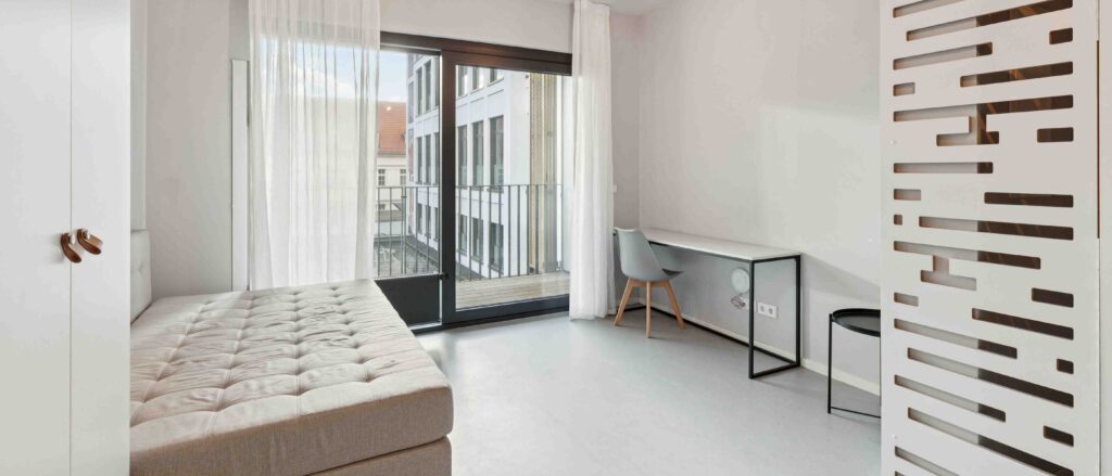 Dank der ruhigen Innenhoflage genießen die Bewohner ein entspanntes Wohnen abseits des Trubels, ohne auf die Vorteile der zentralen Lage verzichten zu müssen. Große Fenster, durchdachte Grundrisse und hochwertige Ausstattung schaffen helles, komfortables Wohnambiente – ideal für Singles, Paare, Familien oder alle, die modernes Stadtleben mit Rückzugsmöglichkeiten kombinieren möchten.