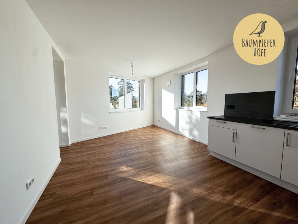Rundum bestimmen Grünflächen das Bild, die durch Baumreihen, Strauch- und Staudenpflanzungen, Rasen- und Spielflächen begeistern und gemeinschaftlich genutzt werden. Insgesamt stehen in den Häusern 1 bis 5 der Baumpieper Höfe 101 Wohnungen von 2 bis 4 Zimmern zur Verfügung.