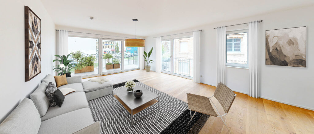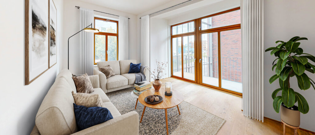 In spektakulärer Wasserlage direkt am Saale-Ufer gelegen, bietet das umfangreiche Sanierungsvorhaben, das in zwei Bauabschnitten realisiert wird, nach Abschluss insgesamt 210 Mietwohnungen in elf Häusern. Die drei- bis fünfgeschossigen Gebäude erfüllen neben den Anforderungen an ein KfW-Effizienzhaus 55 (GEG) auch die Vorgaben für KfW-Denkmalgebäuden und bieten eine intelligente Be- und Entlüftungstechnik.Der Mix aus 1- bis 6-Zimmer-Wohnungen mit einer durchschnittlichen Größe von 33 bis 173 m² stellt ein attraktives Angebot für alle Bedürfnisse bereit – ob für Singles, Senioren, Paare oder Familien. Viele Wohnungen verfügen zudem über einen Balkon oder eine Terrasse. Die Tiefgarage mit 250 Fahrrad- und 137 PKW-Stellplätzen, von denen mehrere als E-Ladestellplätze konzipiert sind, bietet Platz für Autos, Fahrräder und zusätzliche Abstellräume.Der begrünte Innenhof des FREYBERG‘S bietet nicht nur Möglichkeiten für ein nachbarschaftliches Miteinander im Freien, sondern auch einen Spielbereich für Kinder.