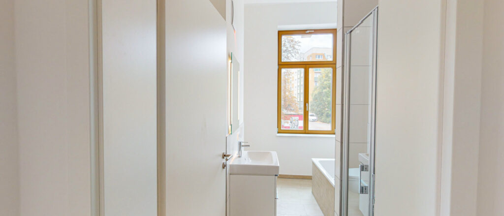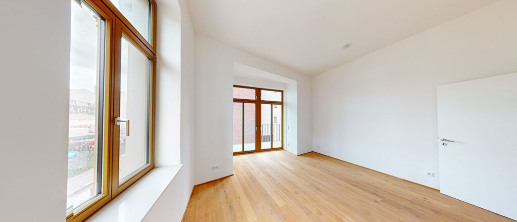 Mit bodentiefen Fenstern, zeitloser Wand- und Bodengestaltung, hochwertiger Sanitärkeramik und Einbauküchen bieten die Wohnungen im FREYBERG‘S nicht nur modernen Wohnkomfort im historischen Ambiente, sondern ermöglichen durch klare Grundrisse und einen weitgehend offenen Schnitt viel Spielraum für eigene Ideen und Gestaltungswünsche.
