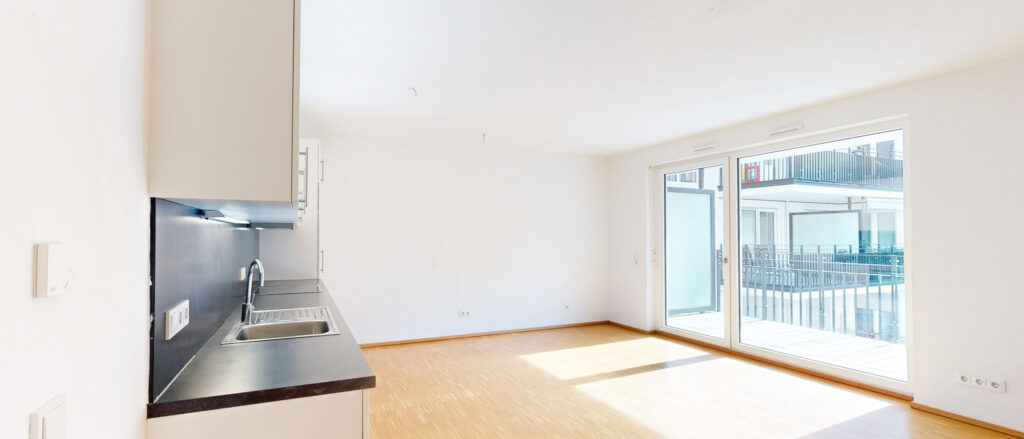Ergänzt wird das Wohnkonzept durch attraktive Gemeinschaftsflächen wie der Servicedesk, einen Loungebereich und einen Fitnessraum. Waschmöglichkeiten auf den Etagen sowie Stellplätze in der Tiefgarage erhöhen den Wohnkomfort.